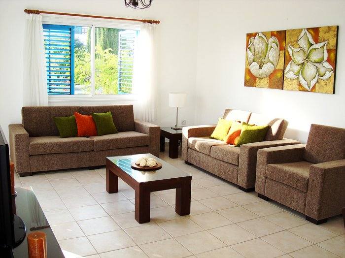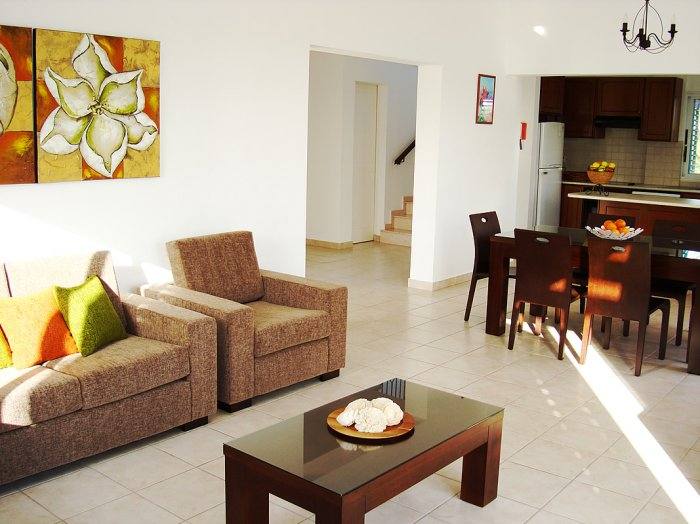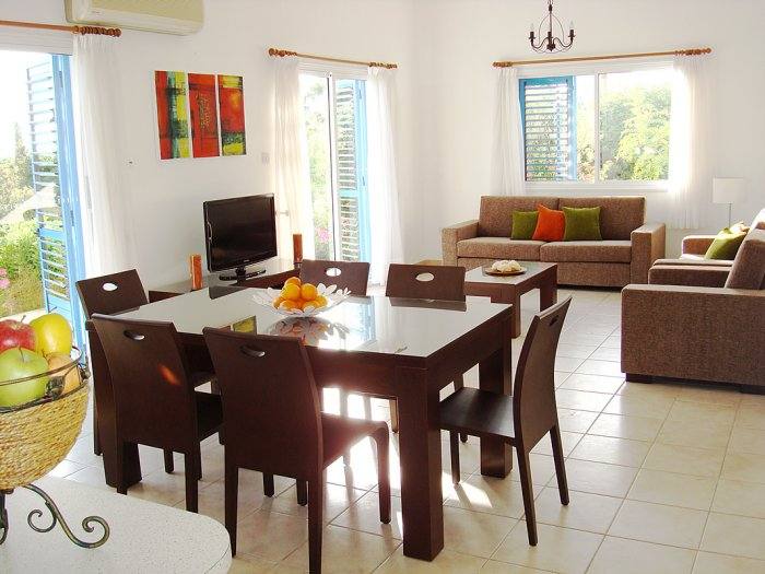 Villa Kianos has a generous open plan living and dining area decorated with modern stylish furnishings.