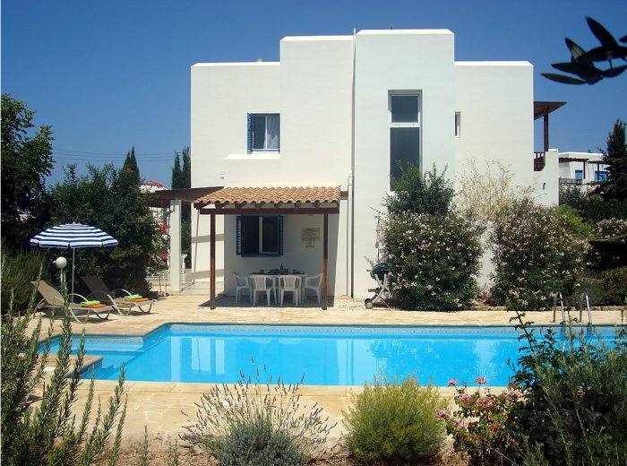 Villa Kianos faces beautiful countryside and sea views and is set amongst unique colourful Mediterranean gardens surrounding the spacious swimming pool which has a step / sitting area open to the pool inset with whirlpool / jacuzzi type jets. Generous paved lounging area also surrounds the swimming pool, sun beds, garden furniture and outdoor dining suite is provided, charcoal BBQs and outdoor shower are also provided.
